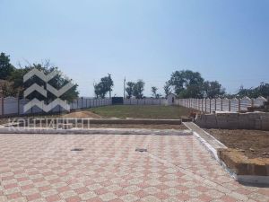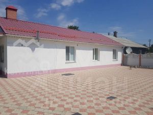 Дворовая территория уложена плиткой, есть небольшой козырек перед домом. Большое парковочное место, на участке заложен фундамент под гараж. Въезд на территорию с двух сторон, передний-главные ворота, второй-с заднего двора. Дом расположен на последней улице поселка, поэтому соседей сзади нет, и открывается вид на поле и залив Донузлав.