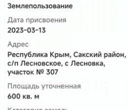 Продается земельный участок площадью 6 соток в живописном пригороде курорта Саки, в поселке Лесновка, Республика Крым! Этот участок идеально подходит как для дачного строительства, так и для ведения садоводства.