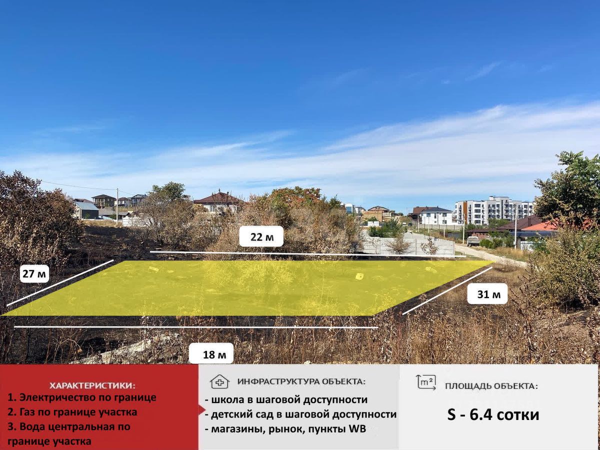 Земельный участок площадью 6.38 сотки расположен в перспективном районе села Мирное, в непосредственной близости от жилого комплекса "Бригантина".