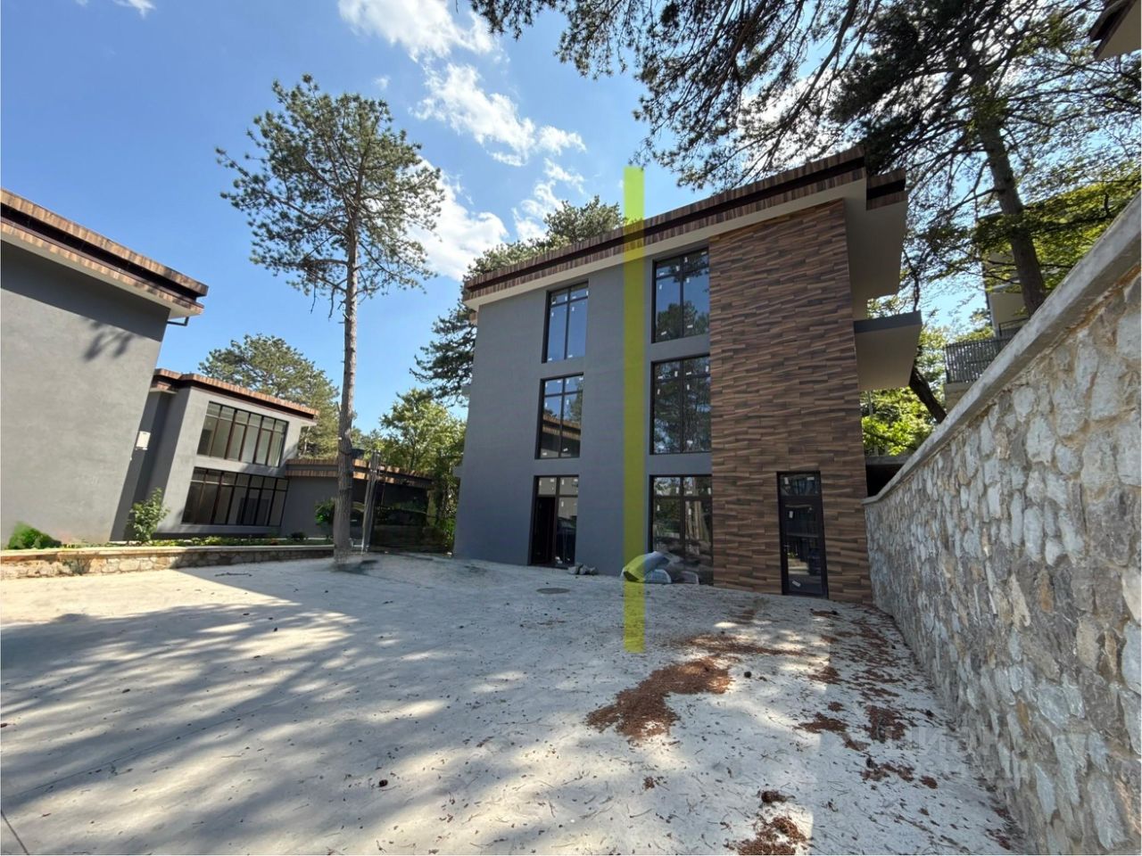 Дом расположен на закрытой территории в коттеджном поселке. Есть земельный участок 3,7 сотки. Своя придомовая небольшая территория, машиноместа на несколько авто. Планировку внутри дома можно изменить. Дом состоит из шести комнат с панорамными окнами. Плюс эксплуатируемая крыша 60 м2.