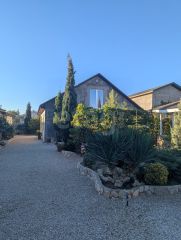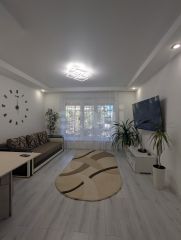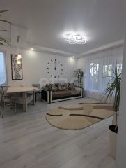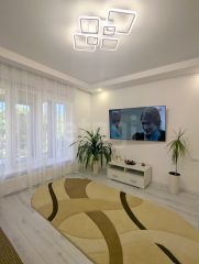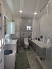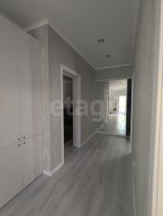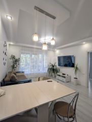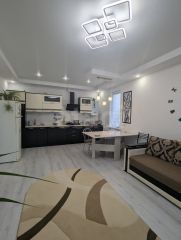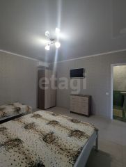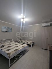 В доме два этажа. На первом этаже: две уютные спальни 13,8 кв.м. и 14,9 кв.м, cвeтлая пpocтoрной кухня- гocтиная 24,8 кв.м., просторный санузел 6,3 кв.м., гардероб 2,5 кв.м. В доме сделан современный дизайнерский ремонт. Санузел облицован современной керамической плиткой, укомплектован качественной сантехникой. В остальных помещениях уложен износостойкий ламинат, везде есть теплый пол, кроме спален. Отопление-индивидуальное, вода-скважина. В доме установлен кондиционер. Также на участке расположены отдельные строения с гостевыми номерами на пять номеров со своими верандами на улице. Номера полностью меблированы и готовы к проживанию. Во дворе есть мангальная зона. Есть гараж на одно парковочное место и во дворе парковка на три автомобиля. Двор озеленен и ухожен, также высажены плодовые деревья, виноград.