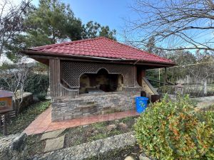 Вся территория засажена различными хвойными деревьями, цветами, газоном и т.д. Весь участок огорожен капитальным забором. Дорога к дому уложена аэродромными плитами.