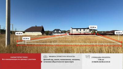 Рядом ведется активное строительство коттеджного поселка "Озерный", что положительно влияет на инвестиционную привлекательность и дальнейшее развитие территории. Объект представляет собой рациональный выбор для тех, кто планирует строительство собственного дома в окружении сложившейся жилой застройки с полным набором коммуникаций и развитой повседневной инфраструктурой, либо рассматривает надежную капиталовложение в землю в активно развивающемся направлении.