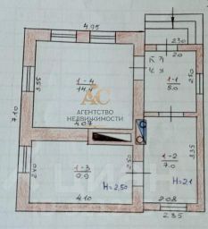 Планировка: 2 спальни (14.4/9.9 кв.м.), кухня 7 кв.м., прихожая 5 кв.м.