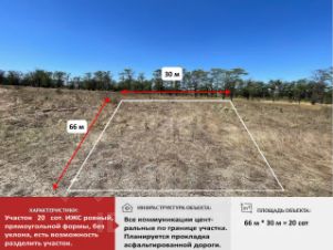 Предлагаем приобрести земельный участок 20 соток в селе Мирное. Участок правильной формы и ровный. Отличное место для строительства дома.