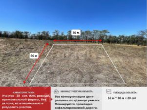 Предлагаем приобрести земельный участок 20 соток в селе Мирное. Участок правильной формы и ровный. Отличное место для строительства дома.