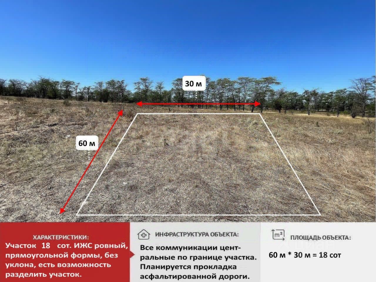 Предлагаем приобрести земельный участок 18.1 соток в селе Мирное. Участок правильной формы и ровный. Отличное место для строительства дома.
