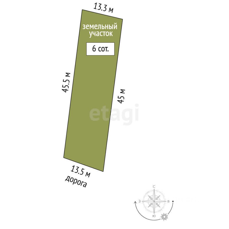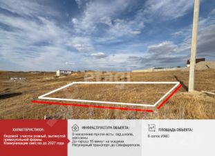 Земельный участок площадью 6 соток расположен в селе Урожайное, относящемся к Симферополю, в районе активной застройки. Категория земель — населённые пункты, разрешённое использование — индивидуальное жилищное строительство. Участок правильной формы с ровным рельефом и плодородным чернозёмом, что упрощает строительство и благоустройство. Территория свободна от построек и насаждений, что позволяет сразу приступить к реализации проекта дома.