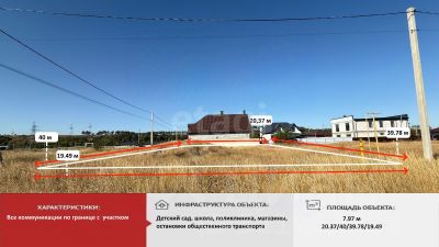 Ровный участок правильной прямоугольной формы, 7.97 соток, находится на улице Грибной. Все коммуникации подведены к участку, что обеспечивает простоту и экономичность подключения.