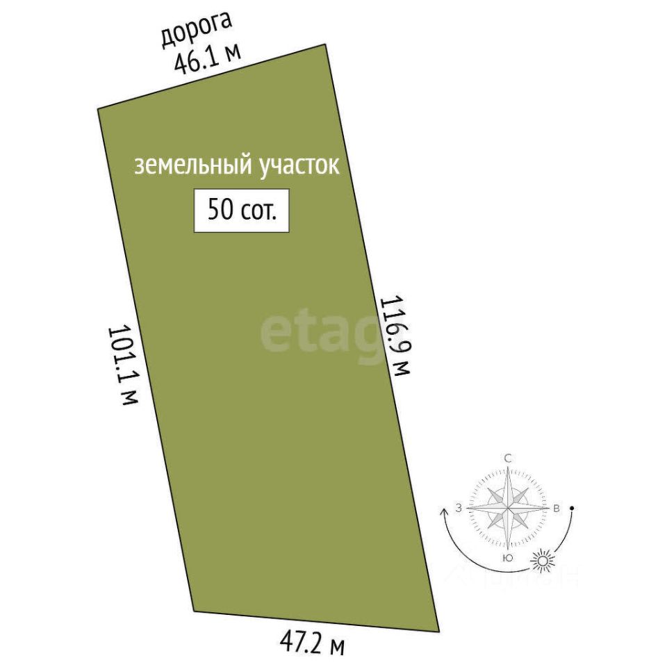 Участок площадью 50 соток расположен в территориальной зоне ведения садоводства согласно утвержденному генеральному плану и правилам землепользования и застройки. Это значит, что Вы можете не только заниматься садоводством, но и построить жилой дом, баню, магазин или другие объекты капитального строительства!