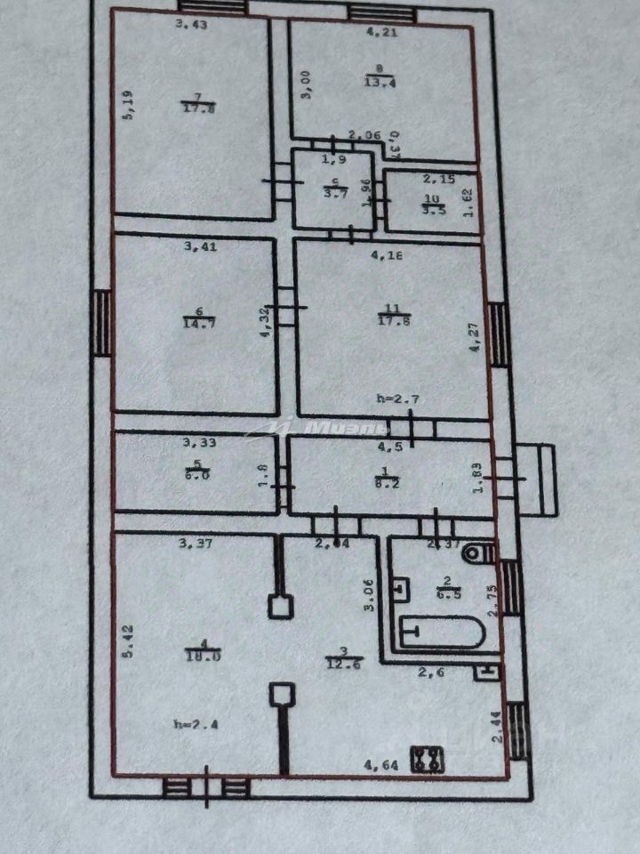 Дом состоит из: 5 комнат (13,4кв.м+17.8 кв.м+17,8 кв м+14,7 кв м+18 кв м), кухни-12,6 кв м , совмещенного санузла, кладовой.