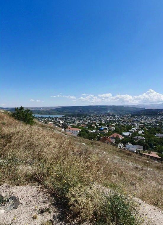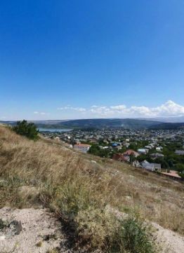 Красивый вид на город, гору Чатыр-Даг и водохранилище.
