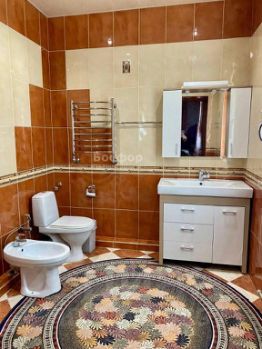 Продам дом с шикарным ремонтом. Дом 168 кв.м. на участке 3 сотки. Материал стен: ракушняк. Планировка: 1 этаж: коридор, зал, гостиная, кухня-столовая, санузел совмещенный, спальня. 2 этаж: коридор, 3 спальни, в каждой комнате личный сан узел. Коммуникации: электричество, городская вода, газ, центральная канализация. Отопление: газовый двухконтурный котел. Документы РФ.