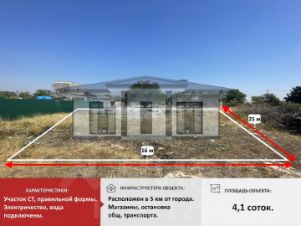 Участок ровный, правильной формы, площадью 4.1 сотки.
