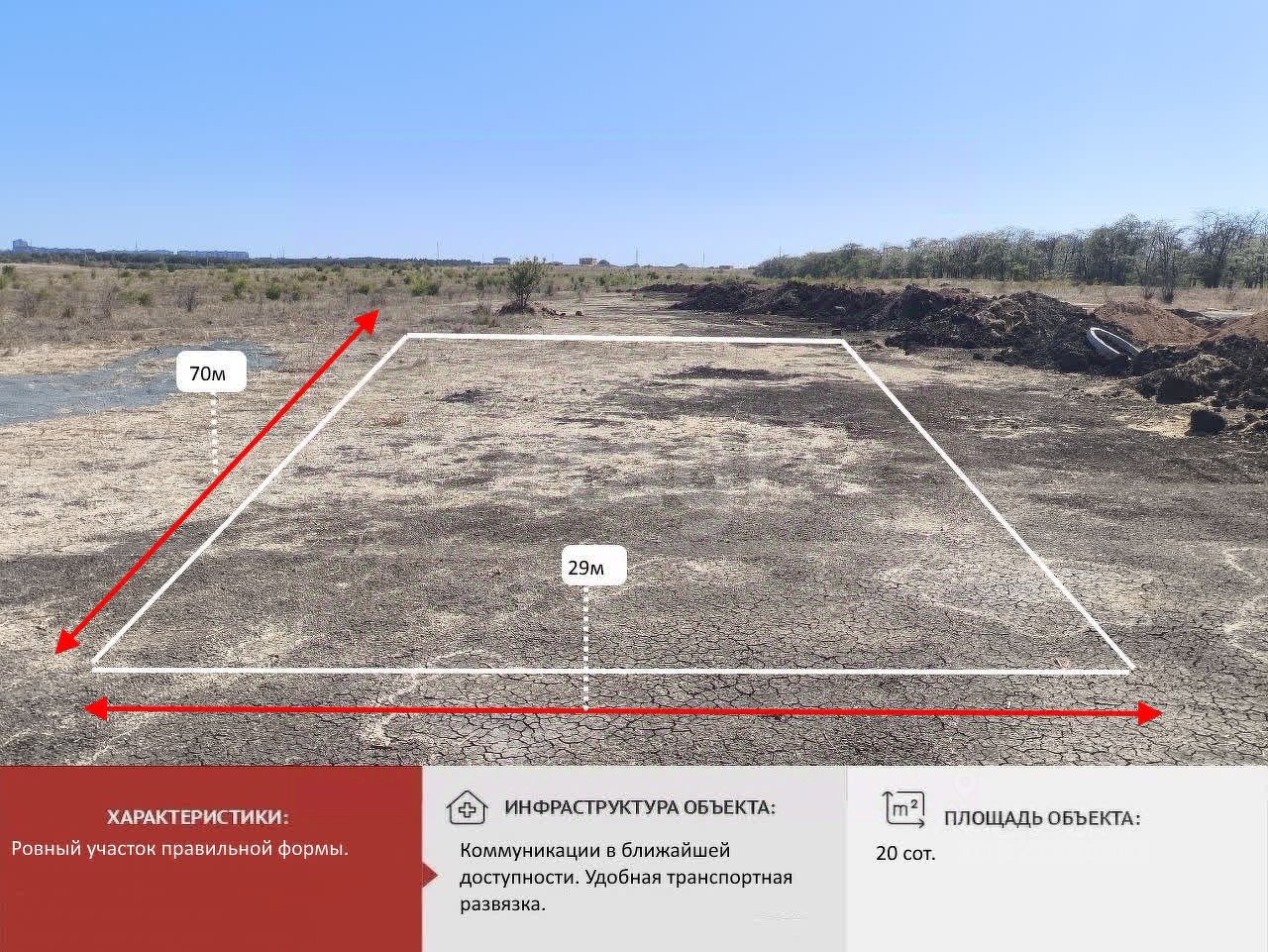 Участок, площадью 20 соток, расположен в тихом и экологически чистом районе, вдали от шумных трасс, но с удобной транспортной доступностью.