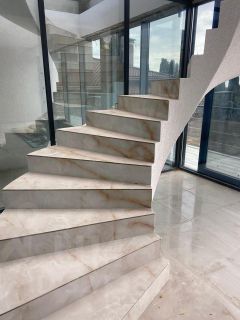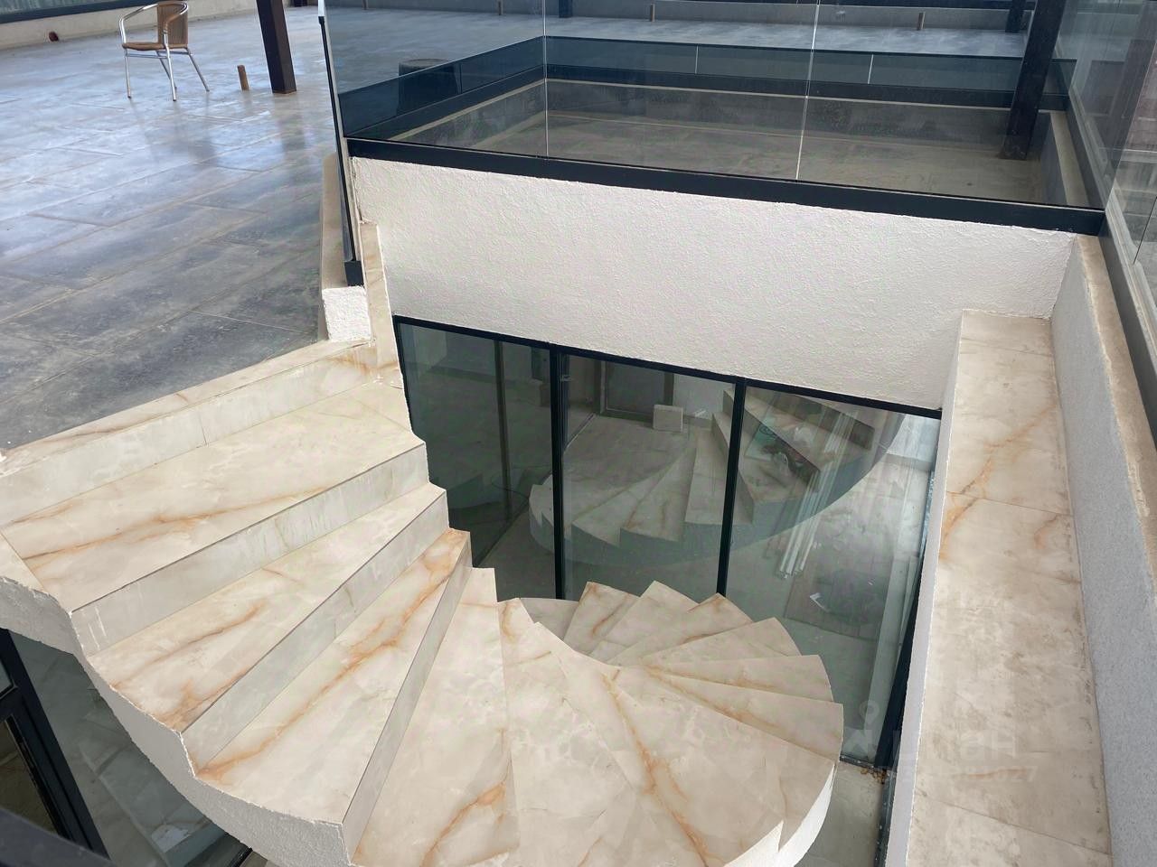 Внутренние и внешние стены из газоблока, стены внутри дома и лестницы отштукатурены. Фасад утеплен и облицован дагестанским камнем.