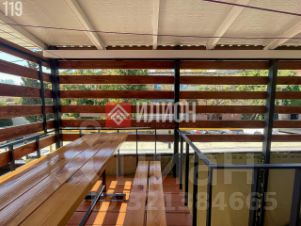 На третьем этаже дома есть просторная терраса с великолепным видом на горы и море. Это идеальное место для утреннего кофе или вечерних встреч с прекрасным видом.