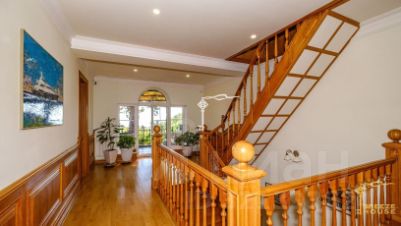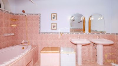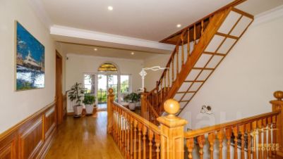 В декоре виллы использован мрамор, на полу - паркет из дуба, а в спальнях из бука, лестница между этажами выполнена из натурального массива дерева, светильники и бра подобраны в едином классическом стиле.