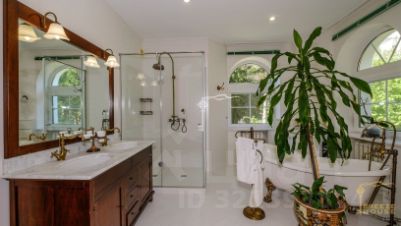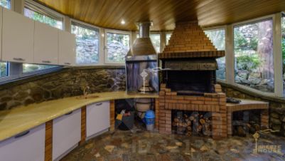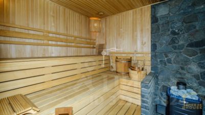 Изюминкой домовладения является крытый бассейн с отдельной зоной джакузи. На втором этаже банного комплекса, площадь которого 198,7 м², расположилась просторная беседка с летней кухней и зоной для отдыха и приема гостей.