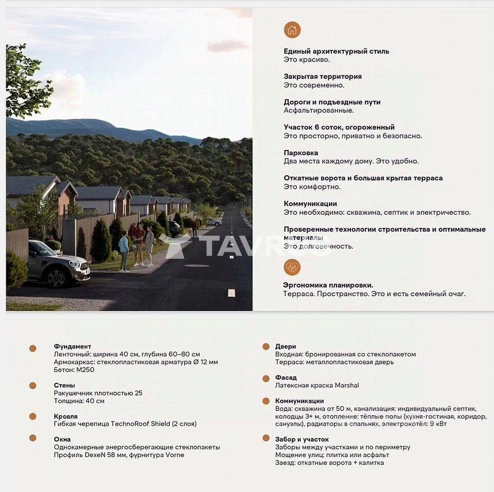 Новый коттедж в уютном поселке на 24 дома, в самом экологически чистом направлении! Всего 30 минут до центра Симферополя и 25 минут до моря в Алуште. Асфальтированный подъезд, окружение леса и гор — идеальное место для спокойной жизни!