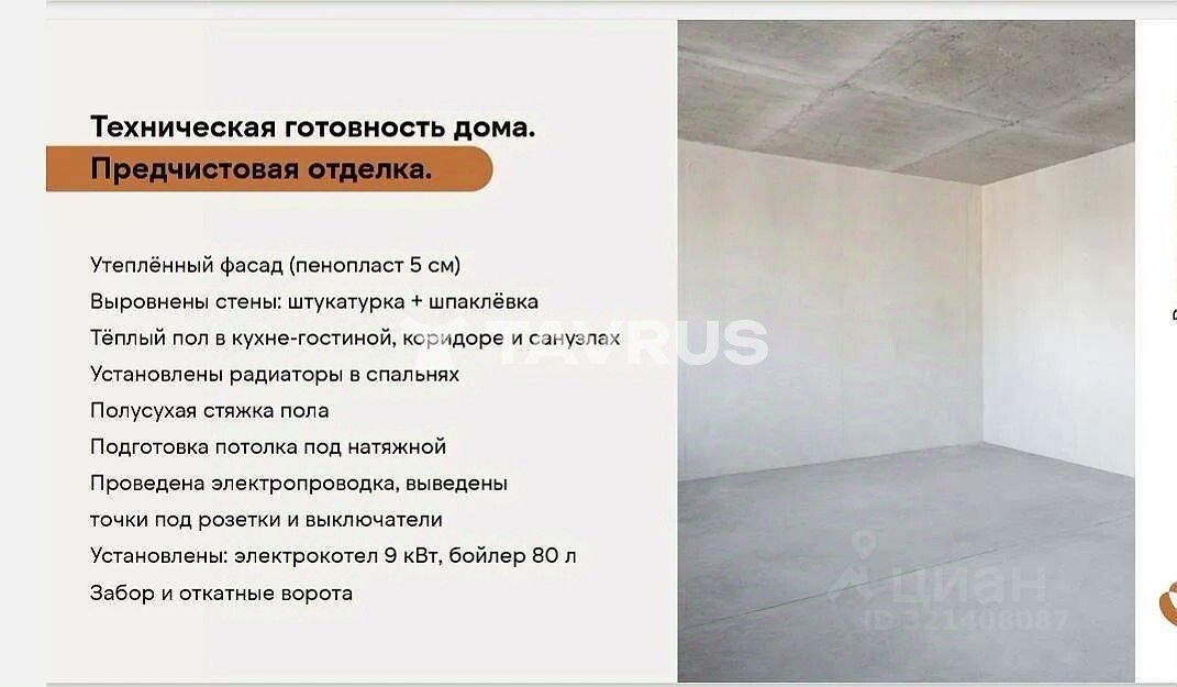 • Предчистовая отделка: стены оштукатурены и шпаклёваны