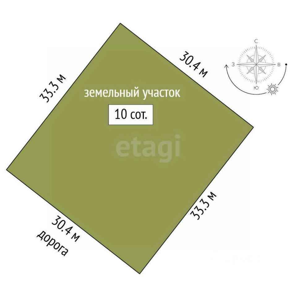 Участок ровный, правильной формы. В 300 метрах от участка находится озеро, которое прекрасно видно с самого участка.