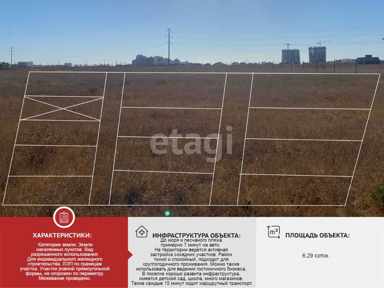 Продается отличный участок площадью 6,29 соток в с.Уютное, непосредственно вблизи к морю.