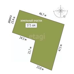 4. Инфраструктура: Участок расположен на освещенной улице вдали от других домов, но при этом близко ко всей необходимой инфраструктуре, такой как остановки общественного транспорта, магазины, школа и детский сад.