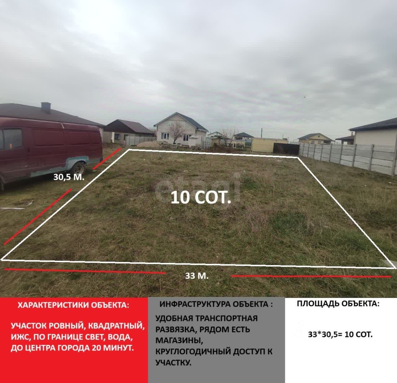 Коммуникации:свeт и водa по гpаницe учacтка, можно подключиться.4