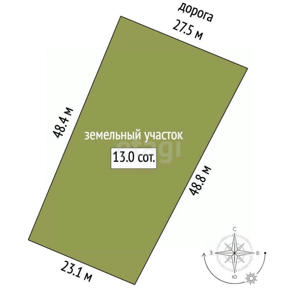 Продаётся земельный участок 13 соток в с. Заречное! Есть возможность разделить на 2 участка!