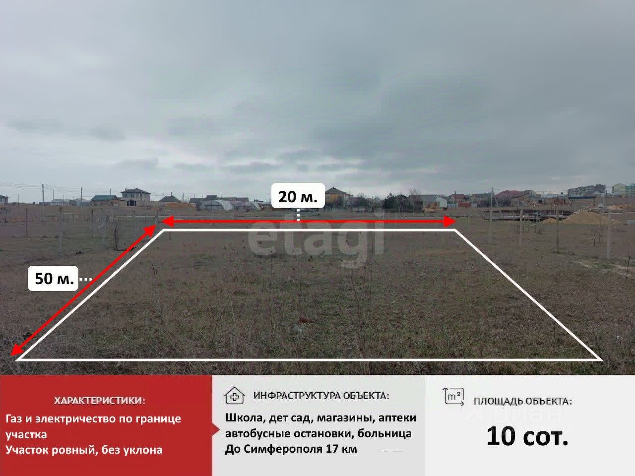 От Симферополя всего 18км, пол часа езды на машине, перспективный район для проживания, участок со всеми коммуникациями.
