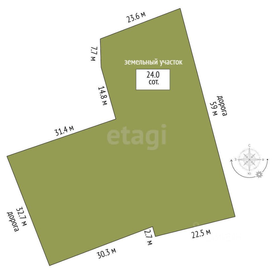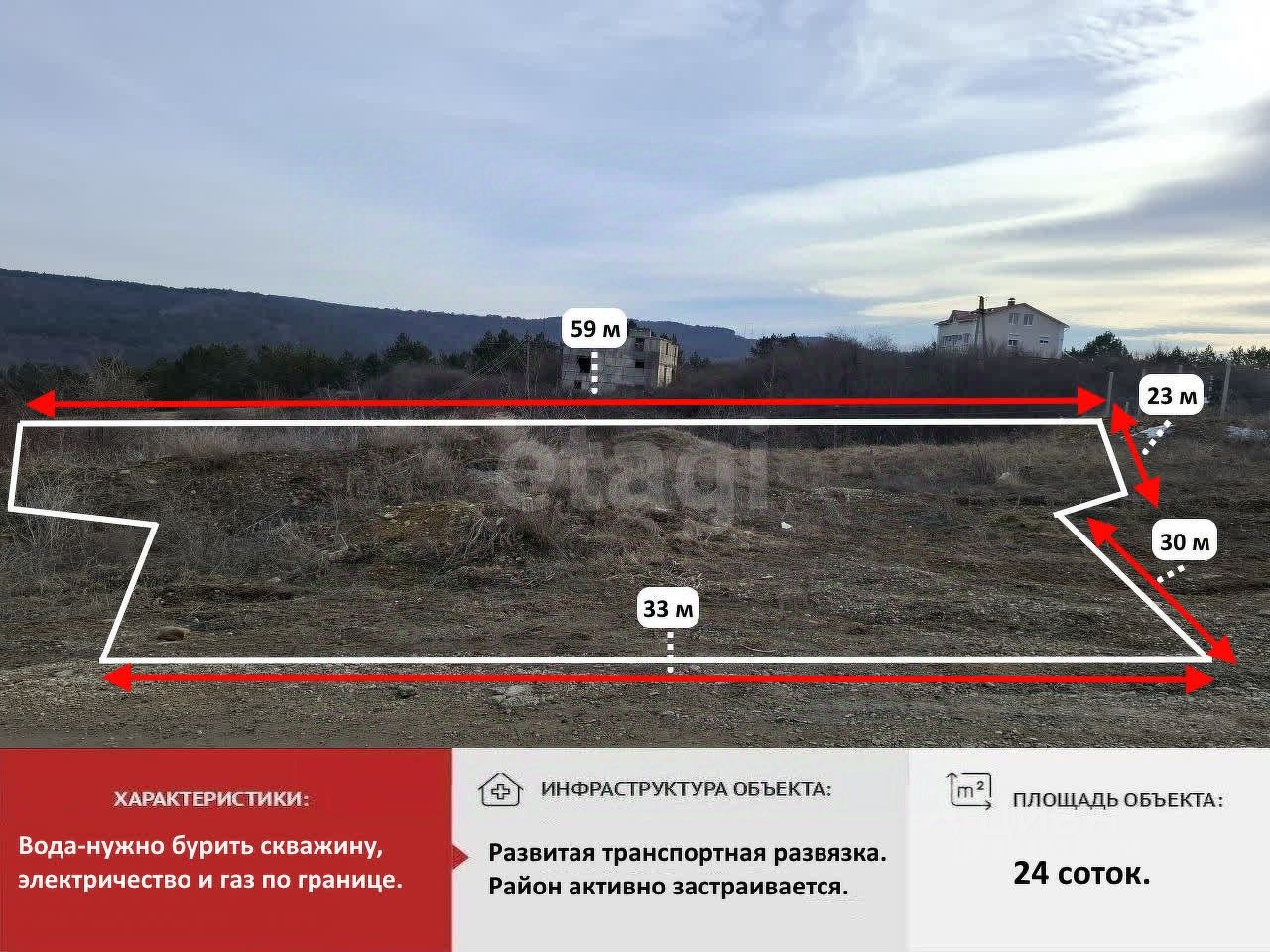 Предлагаем приобрести земельный участок -24 сотки. Видовой, заезд с двух улиц.