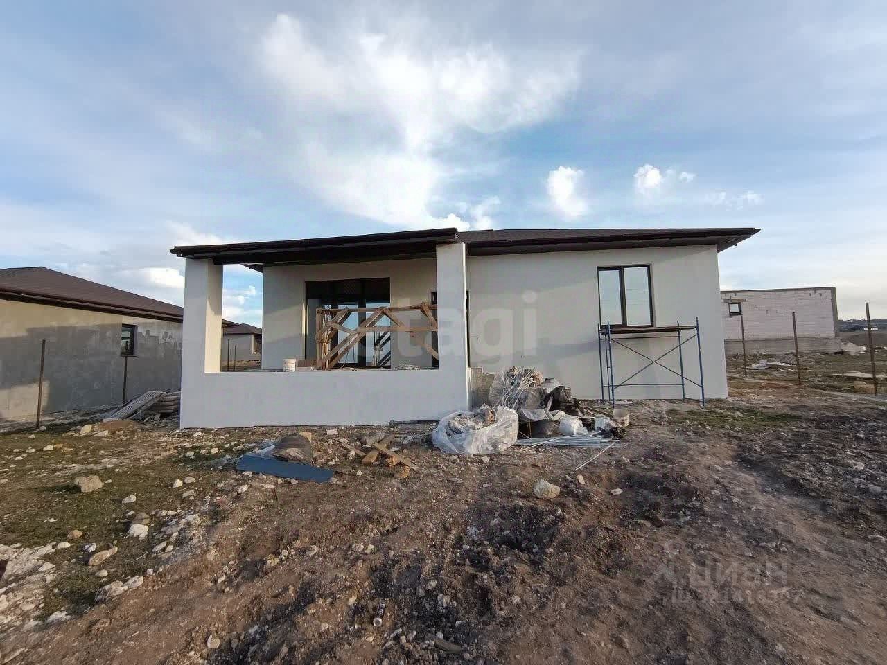 Дом построен из природного камня - ракушняка. Продается в предчистовой отделке: штукатурка стен под обои, пол полусухая стяжка, входная дверь, окна металлопластиковые, шатровая крыша, разводка электропроводки, теплый водяной пол, в спальнях радиаторы, наружная отделка - "Короед".