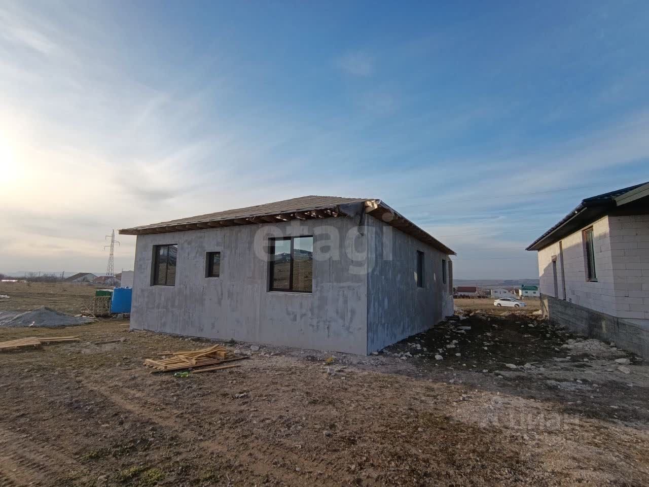 Дом продается в предчистовой отделке: штукатурка стен под обои, пол полусухая стяжка, входная дверь, окна металлопластиковые, шатровая крыша, разводка электропроводки, теплый водяной пол.