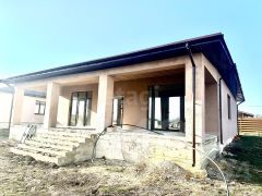 Дом утеплен, нанесена фактурная штукатурка короед, окрашен. Смонтирована водосточная система. По периметру дома широкие отмостки.