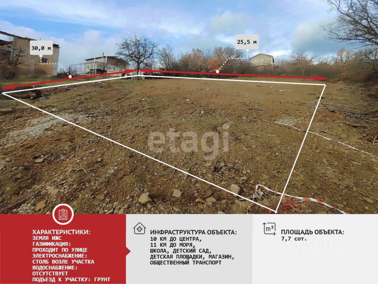 Газ на границе участка. В скором времени будет электричество. Была подана заявка в Крымэнерго.