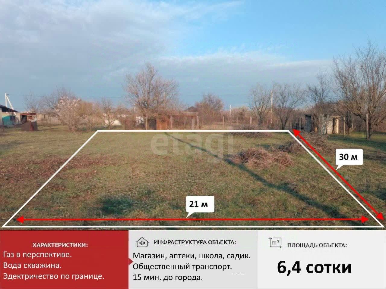 Предлагаем приобрести, земельный участок, 6.4 соток. Правильной формы, ровный.