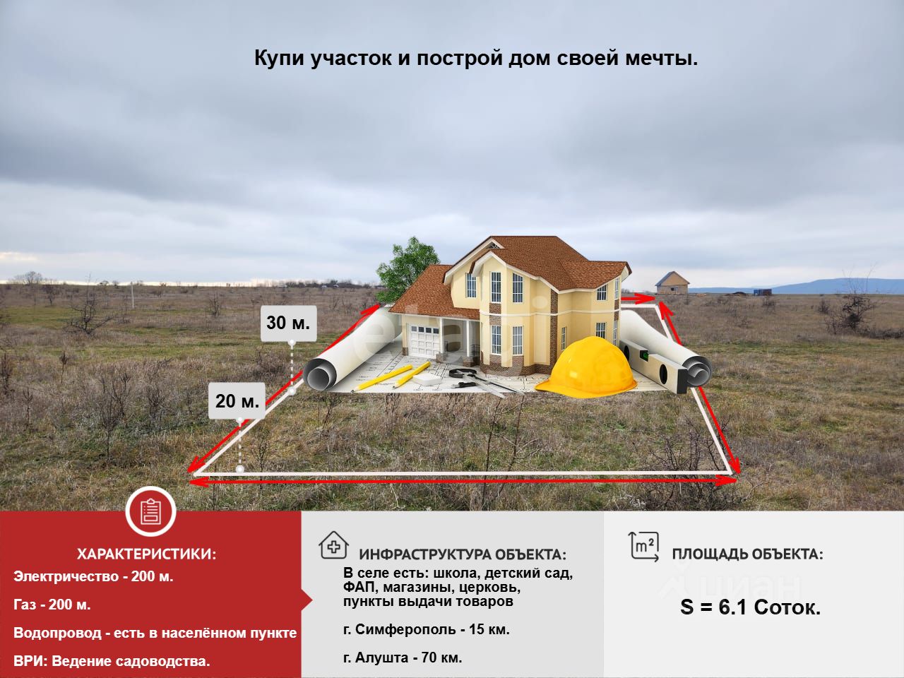Локация: Расстояние до центра г. Симферополь всего 15 км, а до берега Черного моря (г. Алушта) около 70 км.