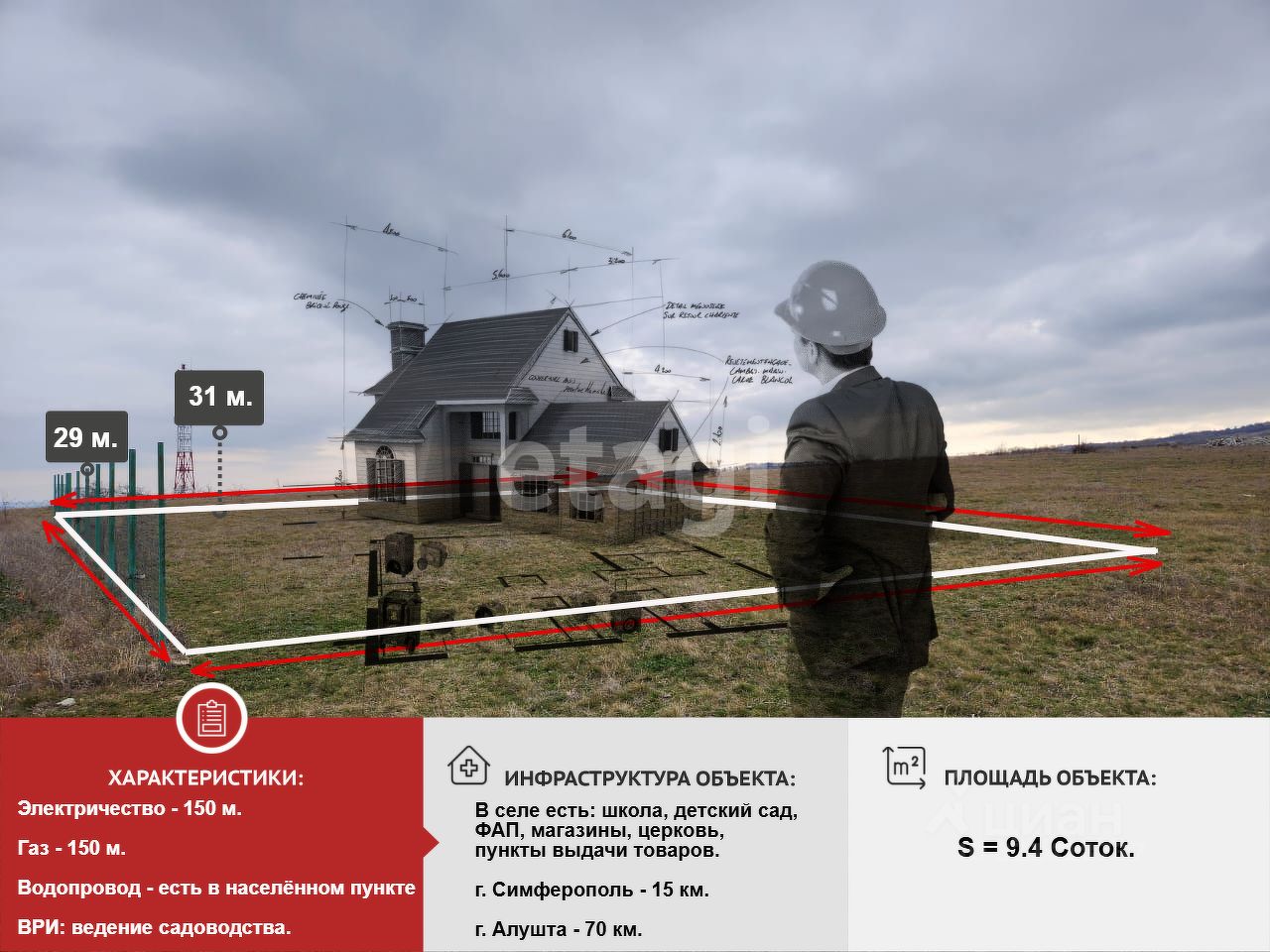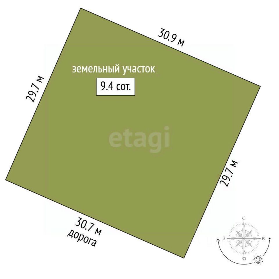 - Площадь 9,4 соток — идеальный размер для строительства вашего дома мечты;