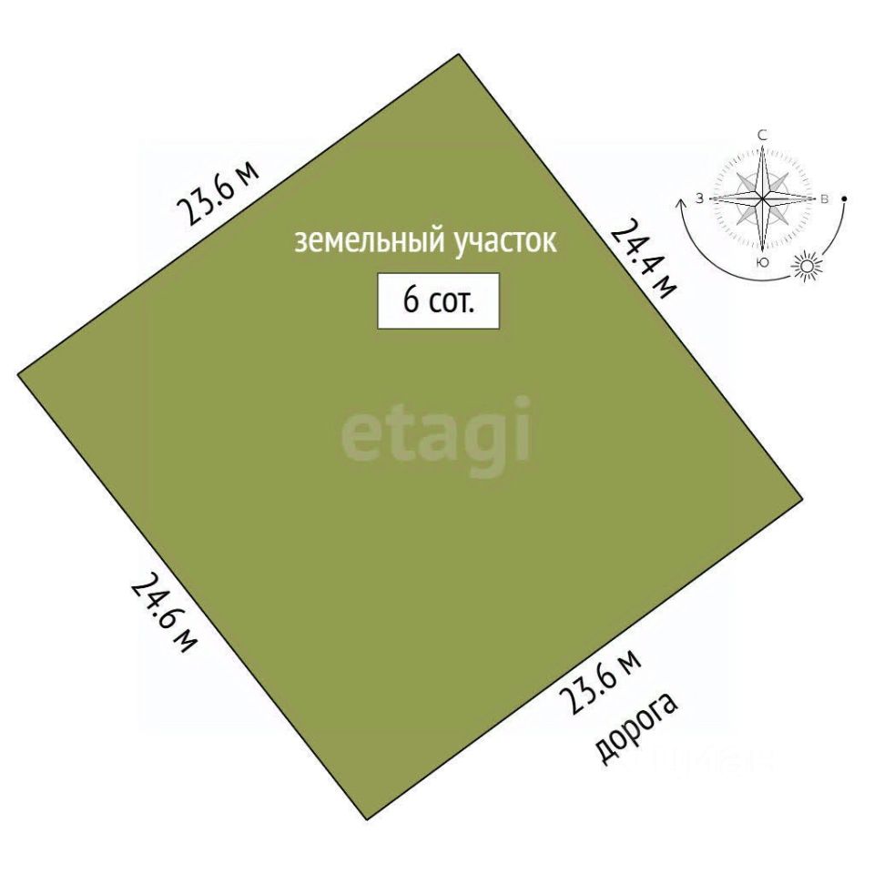 Площадь участка составляет 6 соток — это идеальное пространство для реализации ваших самых смелых идей о собственном доме или уютной даче, где вы сможете наслаждаться тишиной и красотой природы.