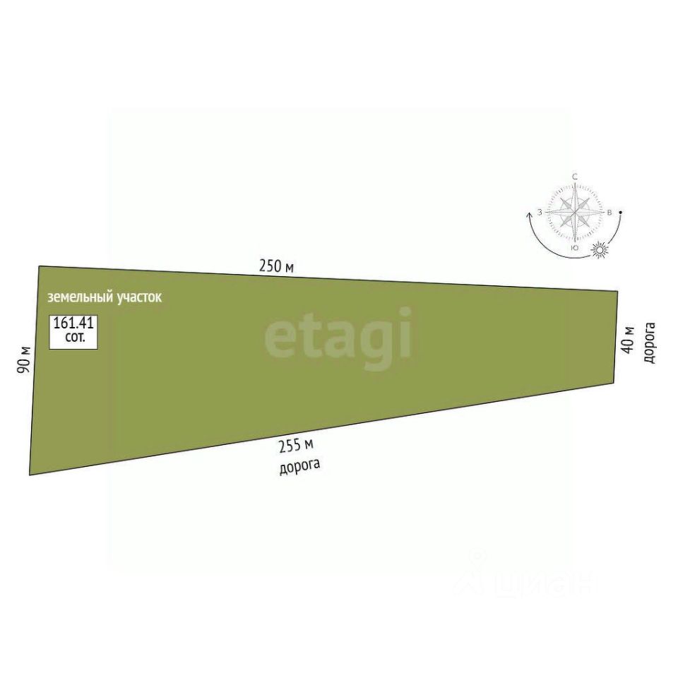 Участок имеет треугольную форму, ровный, без уклонов, что делает его идеальным для сельскохозяйственного использования.