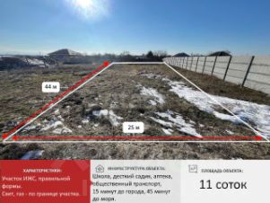 Участок общей площадью 11 соток расположен в с.Первомайское.