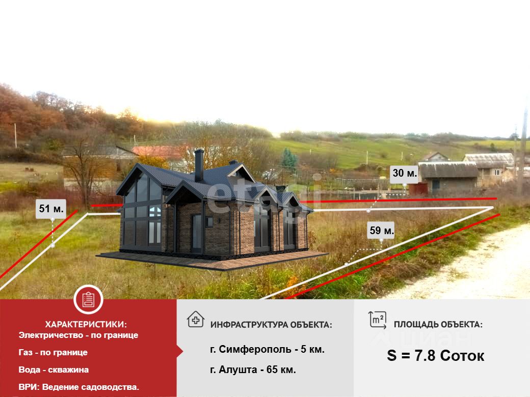 Локация: Расстояние до центра г. Симферополь всего 5 км, а до берега Черного моря (г. Алушта) около 60 км.