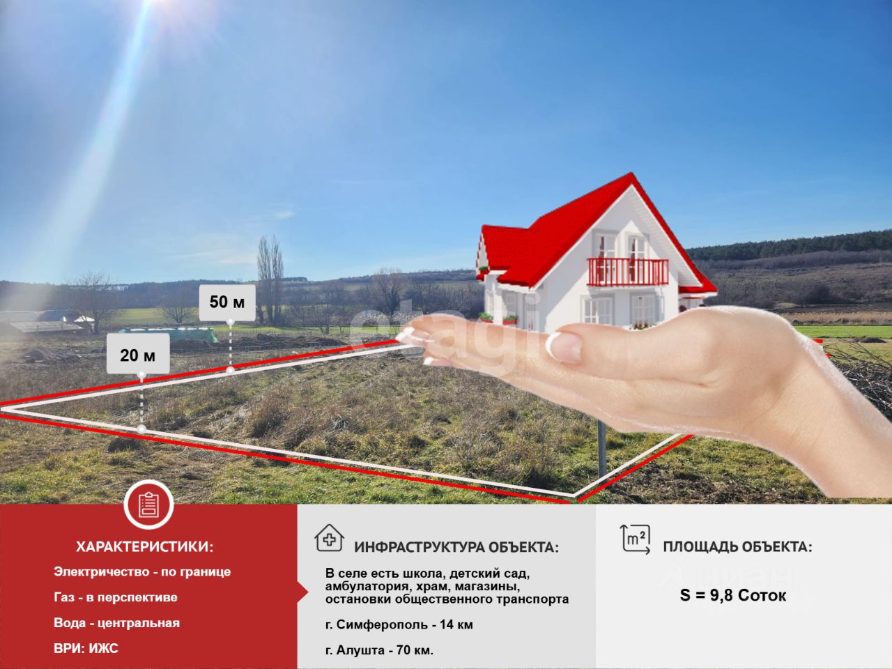 - Площадь 9,8 соток — идеальный размер для строительства вашего дома мечты;