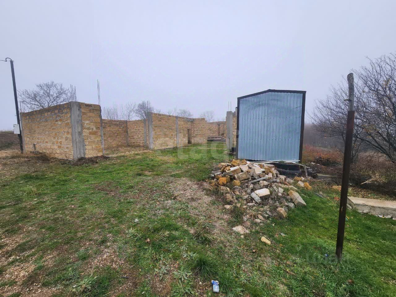 Предлагаем приобрести, земельный участок 5.9 соток. Правильной формы, ровный, огорожен забором. На участке недостроенный дом с гаражом и строительный вагончик.