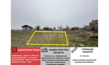 Школа, детский сад и другие объекты инфраструктуры в непосредственной близости! Железнодорожная станция в шаговой доступности. До Симферополя 15 минут езды.В пешей доступности имеется 2 озера. Можно порыбачить, отдохнуть семьёй или с друзьями.