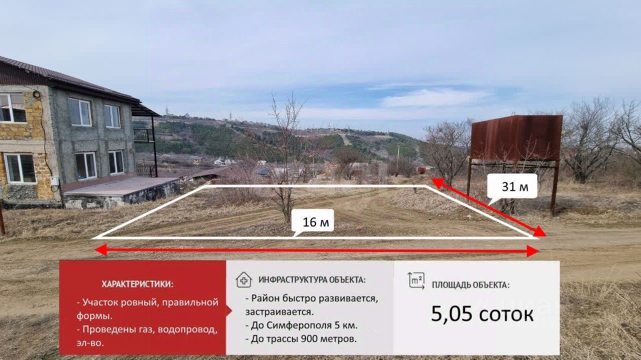 Расстояние до Симферополя 6 км, расстояние до трассы Симферополь-Ялта- 900м, где сразу расположена остановка общественного транспорта.