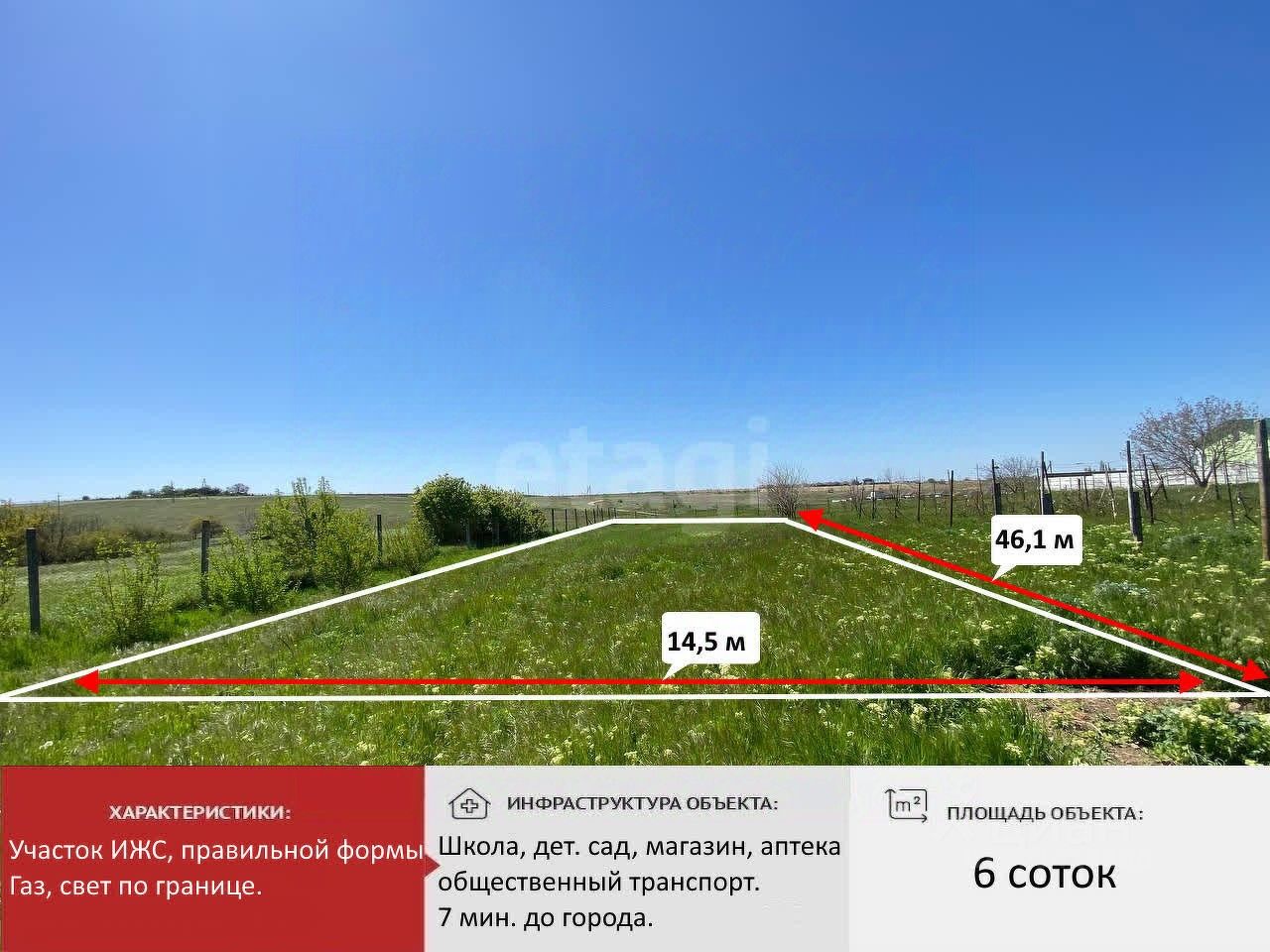 Вдоль участка централизованная вода и электричество, газ по улице. До трассы Таврида 3км, до города Симферополь 5км, до центра 10км. Автодорога недавно отремонтирована, не загружена, самый удобный и без пробок въезд в город!