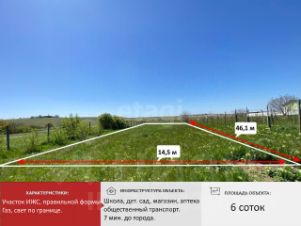 Участок, 6 соток, назначение - индивидуальное жилищное строительство. Есть возможность приобрести еще смежный участок. Участок ровный правильной формы.