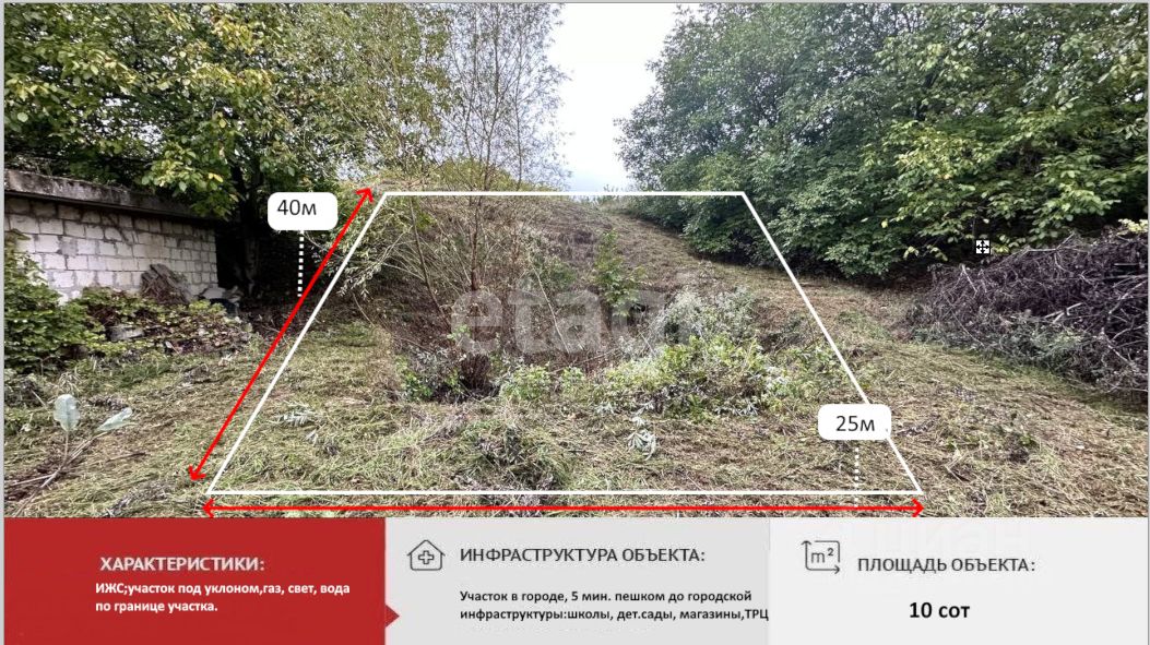 Продается земельный участок, 10 соток , ИЖС. Участок имеет уклон.
